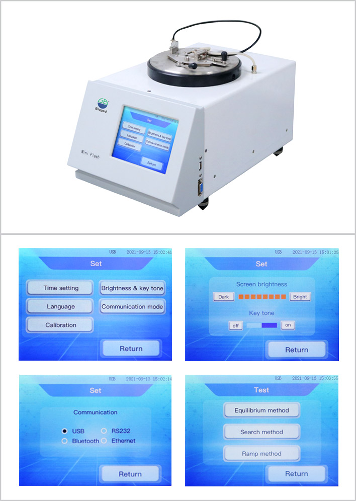 BGD 240 Otomatik Parlama Noktası Test Cihazı hızlı denge kapalı kap yöntemi ile tasarlanmıştır. Kaplama, boya (su bazlı boya), vernik, cila bazı, yapıştırıcı, solvent, Yağ asidi metil ester (FAME), kimyasal reaktif, aroma, baharat, katı kimyasal ürünler, viskoz kimyasal ürünler, , hava fuel-oil, petrol ve ilgili ürünler.